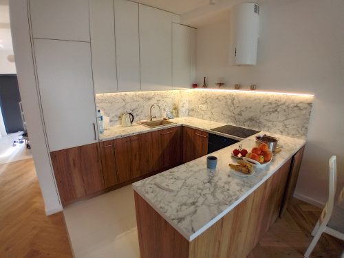 Znają Państwo również kuchnie, których nowoczesność to przede wszystkim funkcjonalność szczególnie tak popularne teraz kuchnie w stylu skandynawskim ale także awangardowa forma. Cechują je odważne zestawienia kolorów oraz niestandardowe łączenie materiałów. Meble na wymiar godzą współczesne rozwiązania z wyrafinowaniem. Zastosowanie najnowszych technologii pozwala połączyć tradycję z współczesnymi udogodnieniami