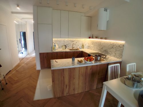 W naszej galerii mebli na wymiar: mogą Państwo znaleźć Państwo meble na wymiar, które odwołują się do tradycyjnych wzorów, tworzą iluzję ponadczasowości. Naturalne materiały drewniane daje poczucie trwałości i nieprzemijalności. Ciepłe, kolory tworzą przyjemną rodzinną atmosferę, poczucie bezpieczeństwa harmonii. Tego co się wynosi z domu rodzinnego. Łagodnie zabudowana przestrzeń łączy funkcje dzisiejszej kuchni i dawnego salonu.